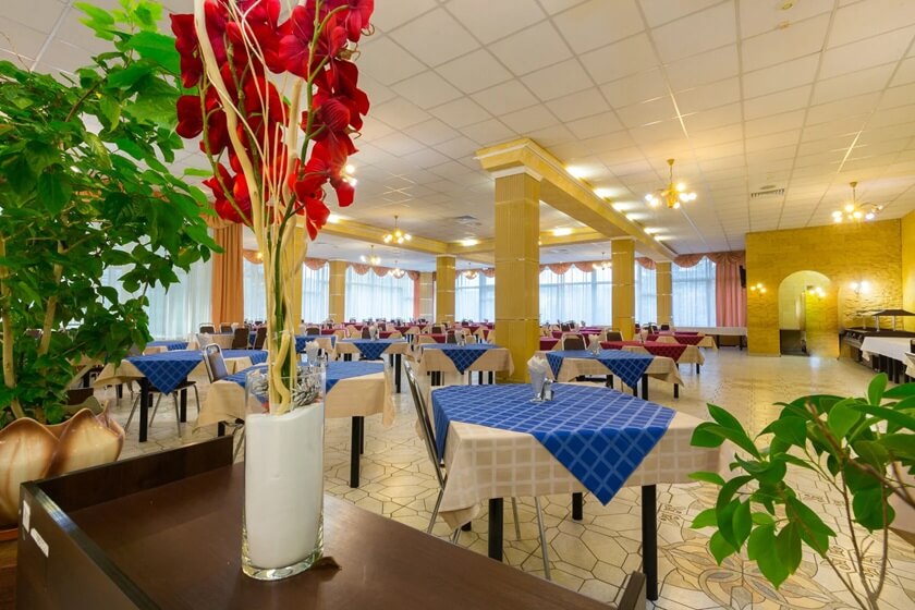 Питание в пансионате «Поляны» организовано по следующему расписанию: завтрак с 09:00 до 11:00, обед с 13:30 до 15:00, ужин с 18:20 до 19:45.