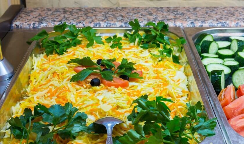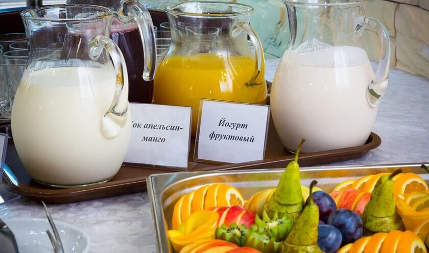 Отдельно предусмотрен прайс на питание взрослых и детей в возрасте от 5 до 11 лет. На выбор большое разнообразие блюд русской, европейской кухни. Предусмотрена удобная сервировка для возможности выбора подходящего меню.